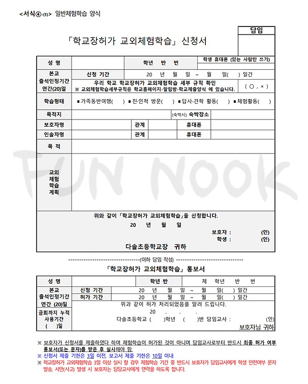 신청서를 제출하여 교사의 승인 절차를 거치면 출석 인정을 받을 수 있어 학생과 학부모에게 중요한 서류입니다.