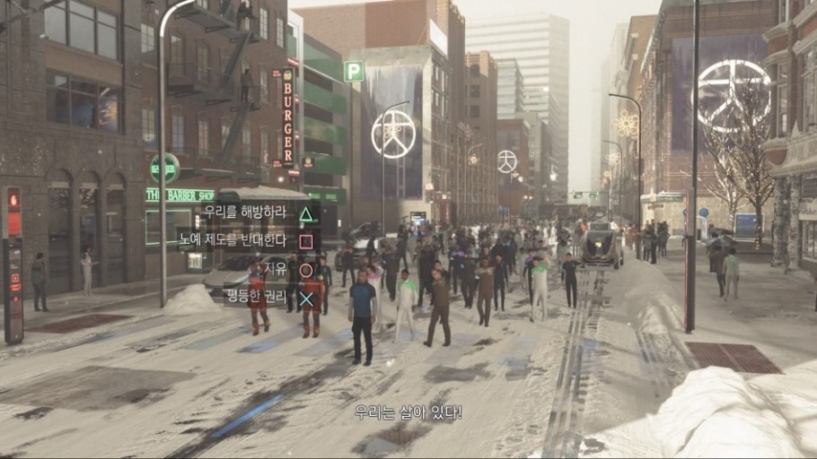 게임은 퀀틱 드림의 독창적인 기술을 활용하여 놀라운 그래픽과 사실적인 캐릭터를 구현했습니다. 얼굴 표정의 세세한 변화와 감정이 느껴지는 연출은 배우들의 모션 캡처를 통해 생생하게 전달됩니다. 도시의 모습과 각 장소의 분위기는 마치 영화의 한 장면처럼 플레이어를 몰입하게 만듭니다.