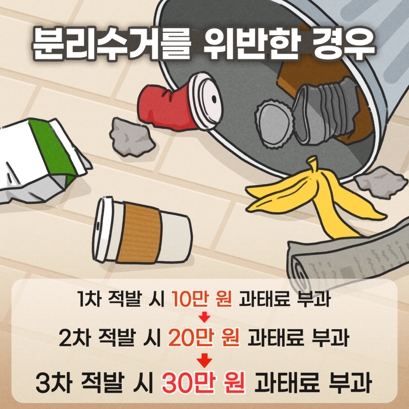 음식물 분리수거를 위반했을 경우 부과되는 과태료는 다음과 같습니다: